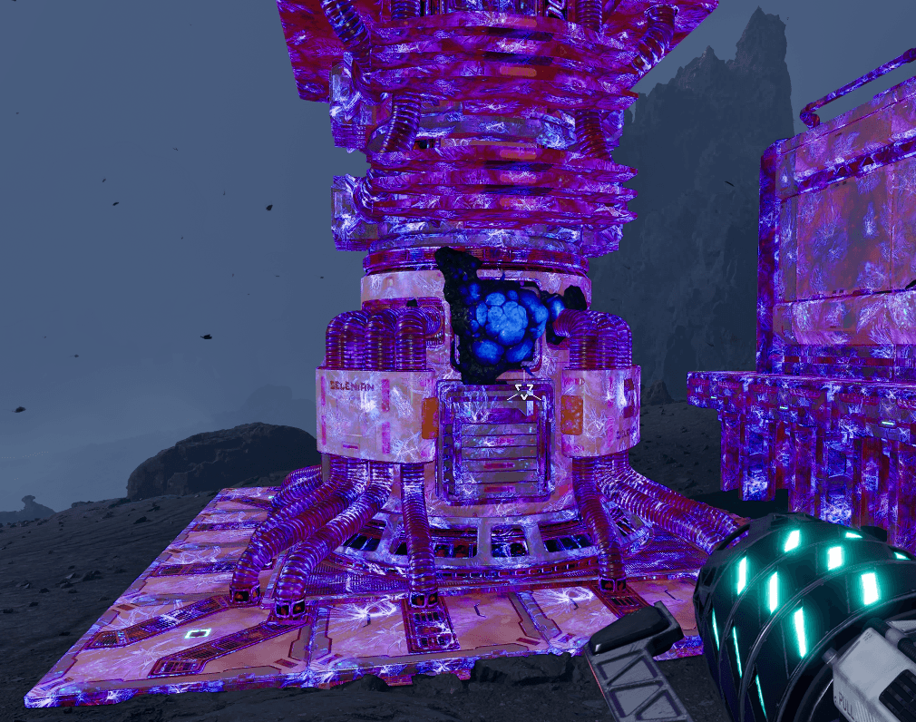 最も見つけやすいカルシウム鉱床は、着陸船(ゲーム開始地点)を出て真っ直ぐ前に進み続けると右手側にあります。