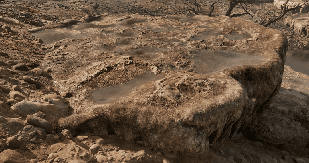 カルシウム鉱床はフィールド上に何箇所か点在しています。